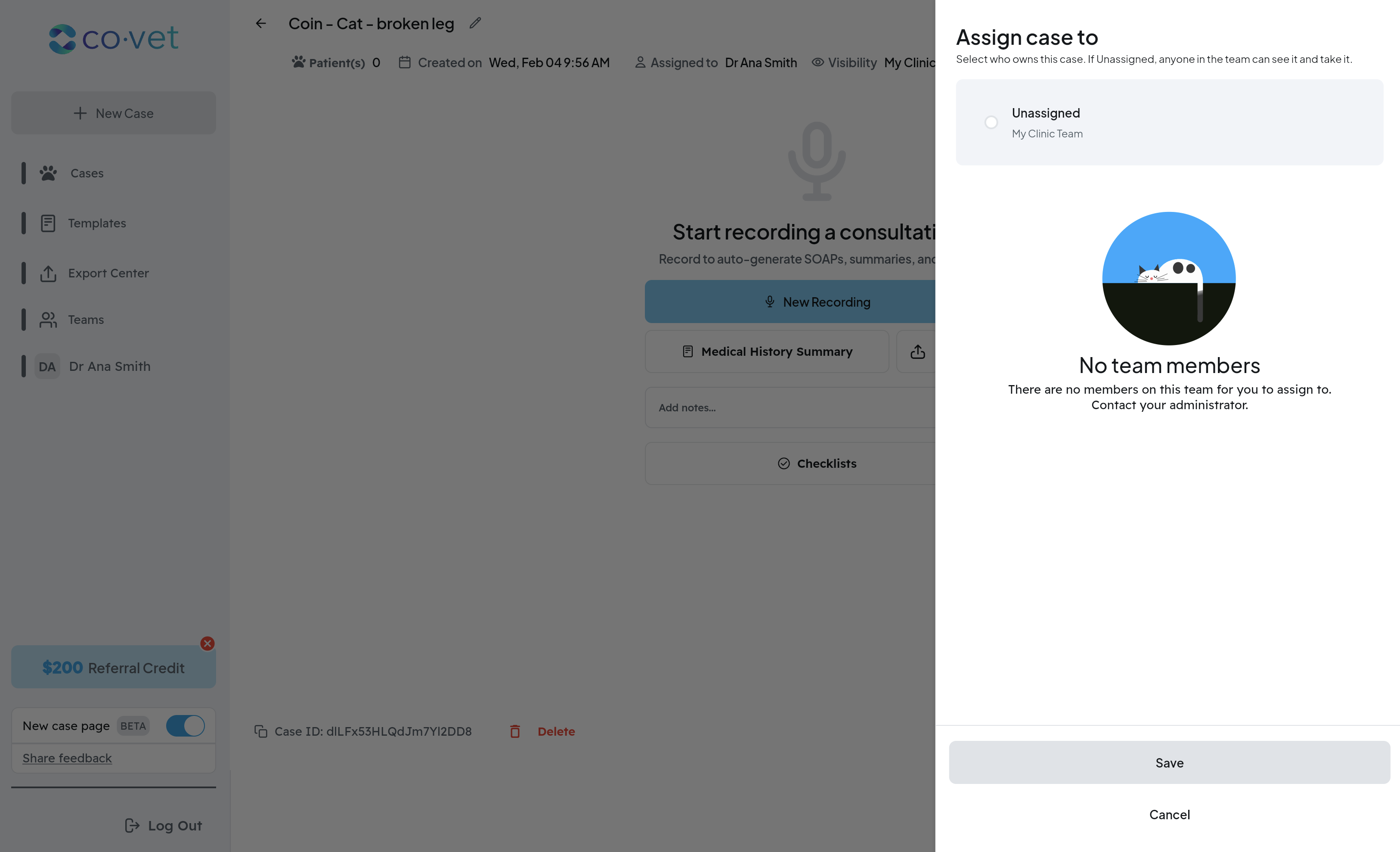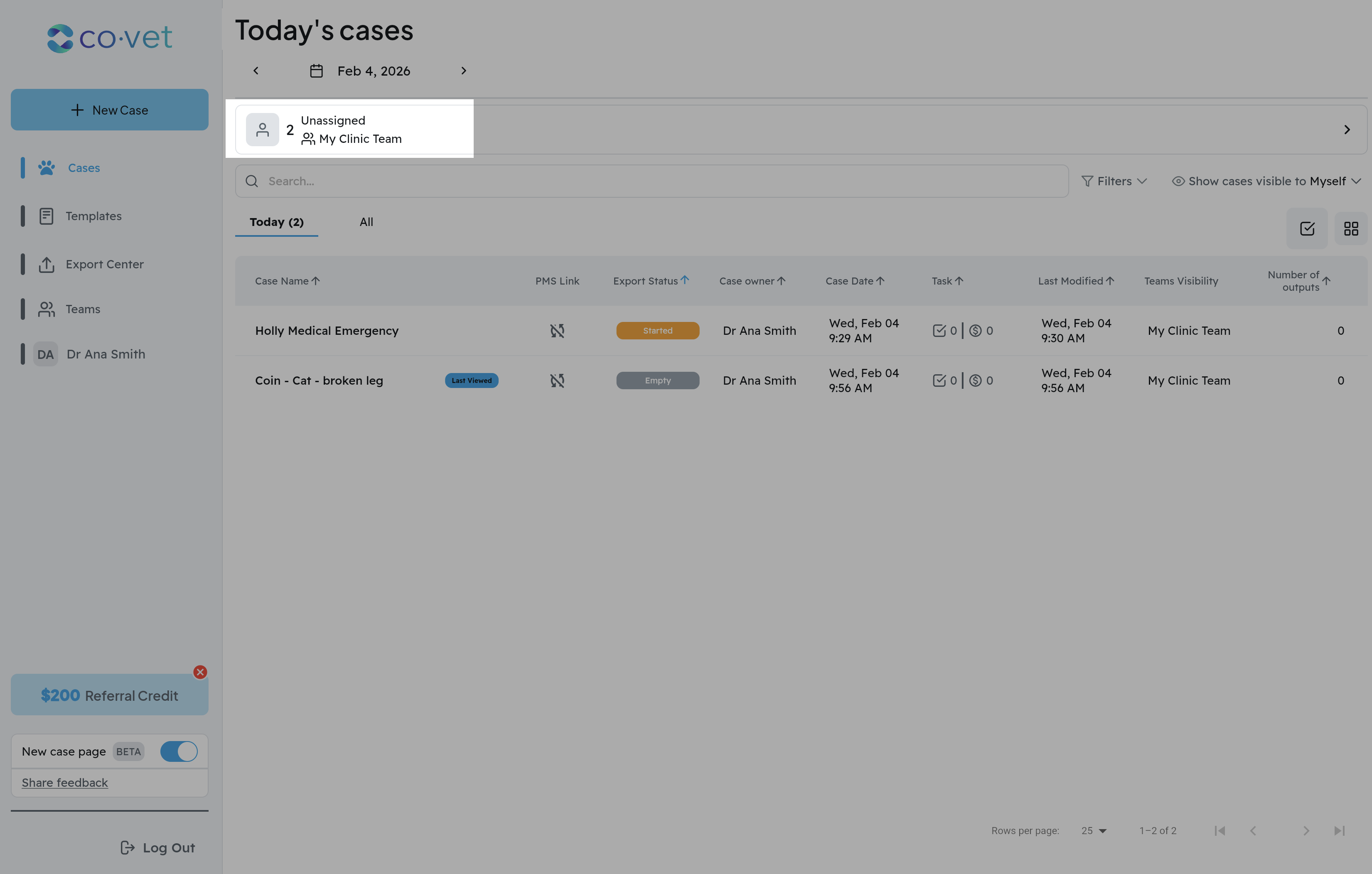 Unassigned Cases let teams create cases before a specific clinician is assigned, while keeping visibility and ownership clear based on team membership and permissions.
